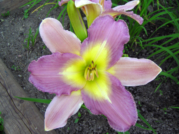 Саженцы лилейника гибридного Нил кран (Hemerocallis hybrida, Nile Crane) высаживают в уютном месте миксбордера, клумбы, газона. Предпочитает расти на солнце, но мирится с полутенью. Для высадки молодого растения выбирают влажную, дренированную почву. В народе цветок называют просто «лилия». Это очень декоративный, неприхотливый многолетник. Высота взрослого растения 70 сантиметров. В июле распускается лилово-розовыми цветами с желтым горлышком и волнистыми краями, диаметром до 14 сантиметров. Цветение длится месяц. Лилейник источает легкий приятный аромат, привлекающий пчел и бабочек.