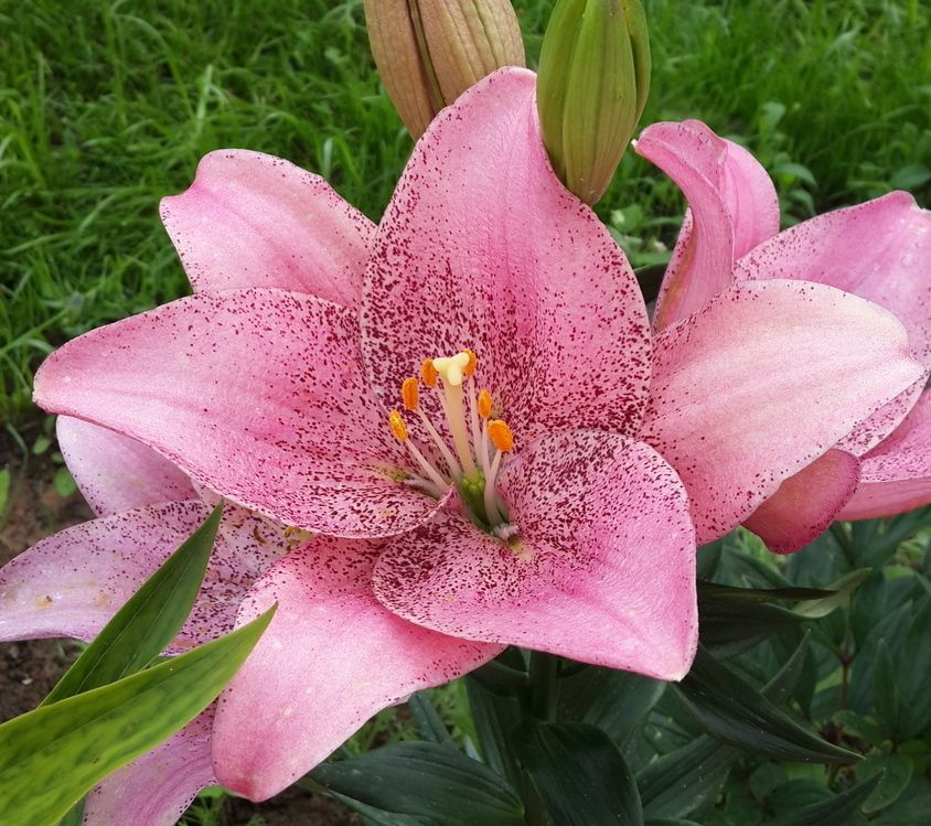 • Окраска цветка : крупный, нежно-розовый с сиреневым оттенком и густым темно-розовым крапом
