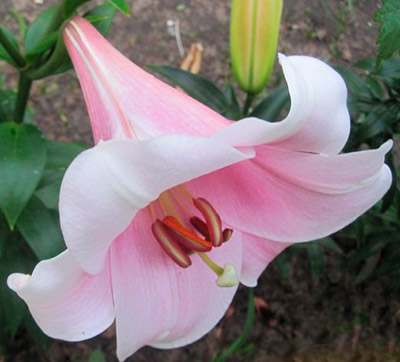 Луковицы лилии ЛО-гибрид Беллсонг порадуют в середине лета, когда на мощных стеблях распустятся роскошные воронковидные цветки. Они имеют очень крупный размер и лепестки нежного розового оттенка с более ярким центром и светлыми краями. ЛО-гибриды были выведены в результате скрещивания восточных и длинноцветковых лилий. Лилия Беллсонг – яркий представитель этих сортов. Ее крепкие стебли достигают 140 см в высоту. Цветки имеют трубчатую форму, при этом их лепестки широко раскрыты и немного загнуты. Цветет данный сорт в июле-августе, наполняя сад неповторимым сильным ароматом.