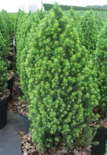 Саженцы Ели канадской Коника Майголд (Piccolo) – является хвойным деревом с декоративной формой конуса. Вырастает в высоту до 100-300 сантиметров и диаметром 120 сантиметров. Молодое растение с золотисто-желтой хвоей, которое со временем обретает темно-зеленый окрас. Хвоя вырастает до 5-10 миллиметров. Ель канадской Коника Майголд имеет плоды в виде продолговатых коричневых шишек. Дерево считается морозоустойчивым. Молодое растение предпочитает полутень, может пострадать от весенних ожогов. Взрослое растение растет на солнце. Предпочтительна влажная, суглинистая почва. Прекрасно озеленяет террасы.