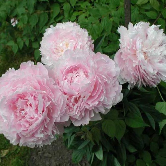 Куст пионов в высоту достигает не больше 80 сантиметров. Зато его цветки могут вырастать до 25 сантиметров в диаметре. Он зацветает в начале мая, когда природа ещё пробуждается ото сна, и становится прекрасным дополнением к нежным и спокойным тонам майских цветов. На протяжении двух-трёх недель перламутрово-розовые махровые цветки будут радовать вас в любую погоду. Лучше всего посадить такие пионы возле хвойных или декоративных кустов или вдоль дорожек из камня.